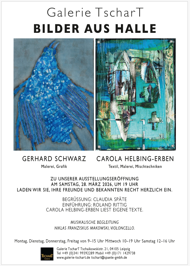 Aktuelle Ausstellungen Bilder aus Halle Vergangene Ausstellungen Kompositionen der Stille im Museum Schloss Moritzburg Zeitz Vergangene Ausstellungen Ausstellung in Riechheim Load More Loading More… You’ve reached the end of the list